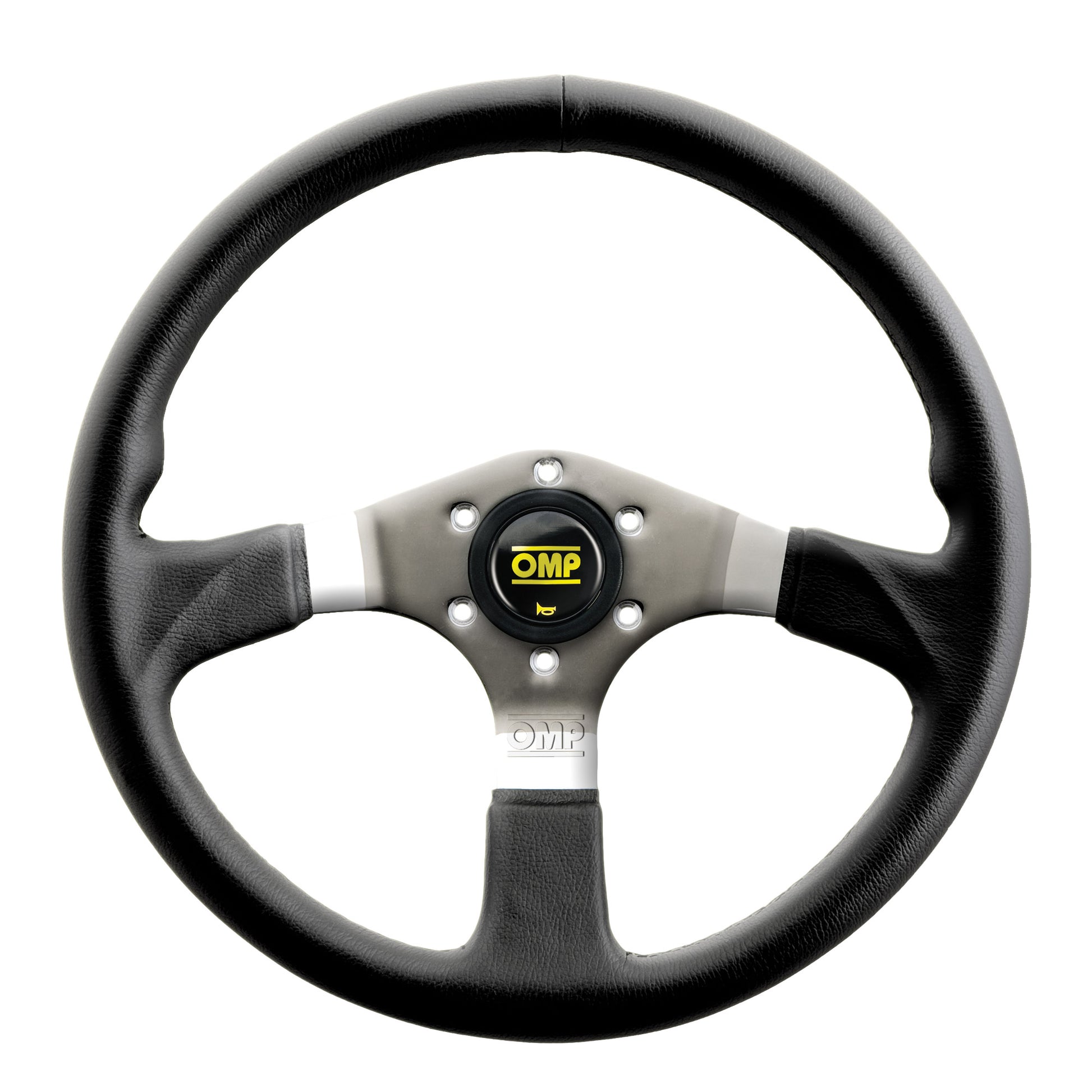 Volante plano de 3 radios cromados en diseño de cuero liso con empuñaduras anatómicas.