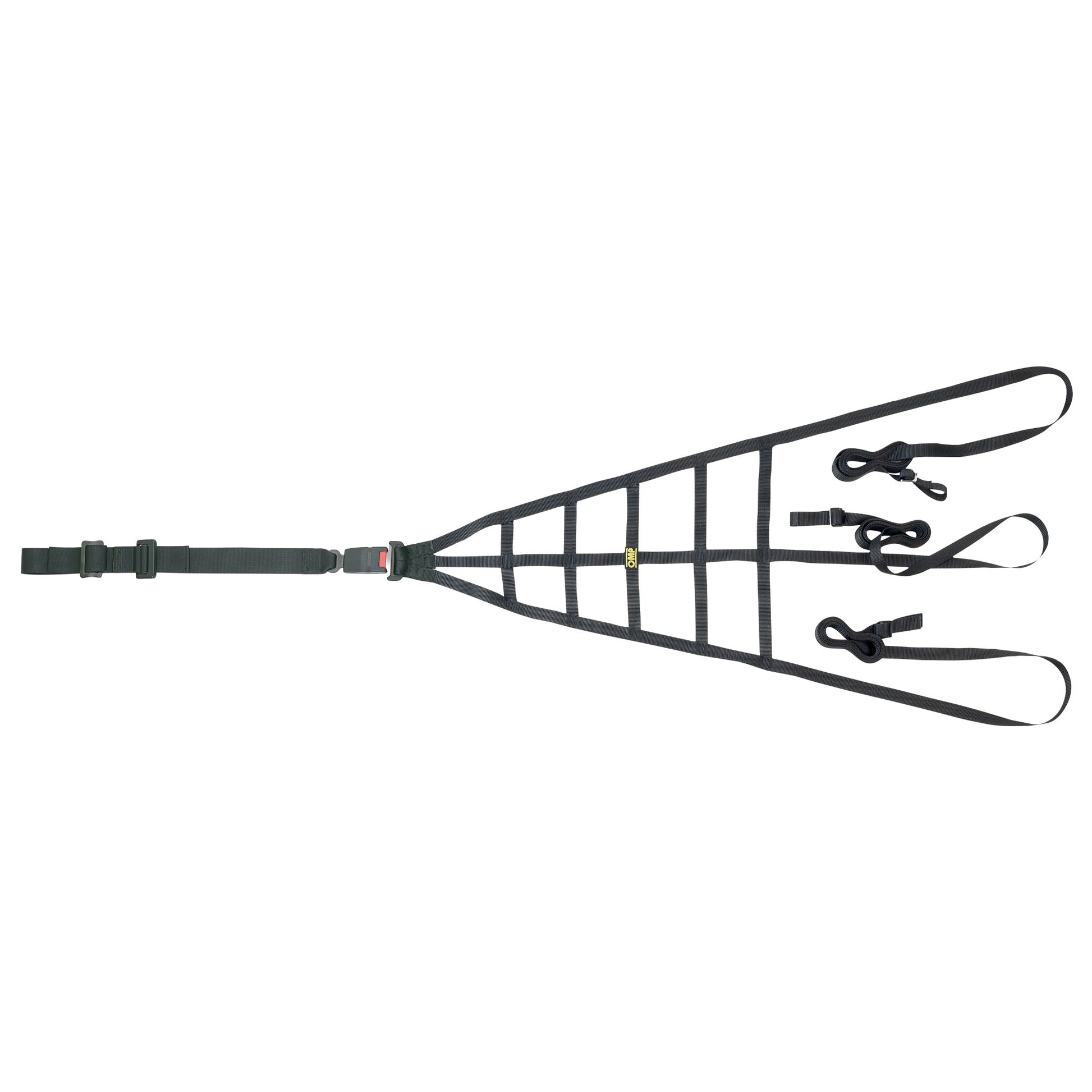 Red de competición profesional de nivel básico homologada por la FIA con reléase rápido y ajuste rápido de la correa delantera para adaptarse a varias posiciones de asiento.